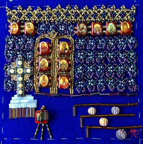 Once I stitched it all together, I went to show my completed square to Rt. Rev John Tataryn, pastor of St. Demetrius the Great Martyr Ukraine Catholic Church. Father marveled at all those tiny beads and the time and eyes it took to created the square. He suggested to call it "Divine Liturgy Online".
